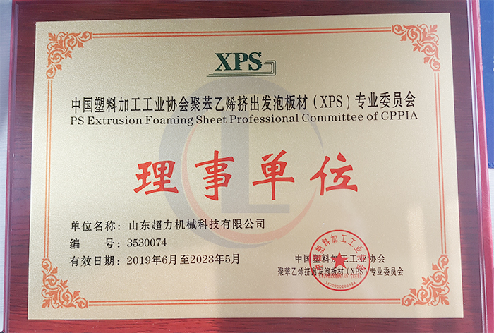 山東超力機(jī)械有限公司,憑借過(guò)硬的二氧化碳擠塑板(CO2-XPS)研發(fā)、生產(chǎn)技術(shù)與優(yōu)異的擠塑板設(shè)備質(zhì)量,被中國(guó)塑料加工工業(yè)協(xié)會(huì)聚苯乙烯擠出發(fā)泡板材(XPS)專(zhuān)業(yè)委員會(huì)授予協(xié)會(huì)理事單位。...
